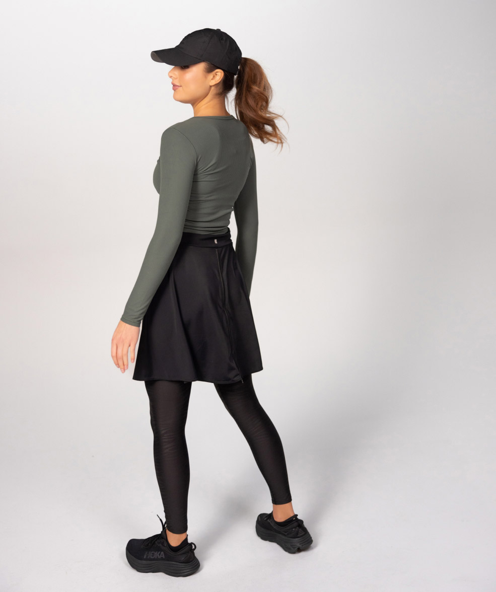 Both innovative and fashionable, this is the ultimate sports skirt. Though the design was created with performance in mind, it also happens to be super cute. Versatile enough to either hit the gym hard or head to the beach, this sleek, supportive and sweat wicking skirt is the perfect go-to skirt for any activity.